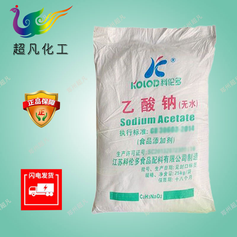 乙酸钠一般以带有三个结晶水的三水合乙酸钠形式存在。三水乙酸钠为无色透明或白色颗粒结晶,在空气中可被风化。易溶于水,微溶于乙醇,不溶于乙MI。123℃时失去结晶水。但是通常湿法制取的有醋酸的味道。水中发生水解。